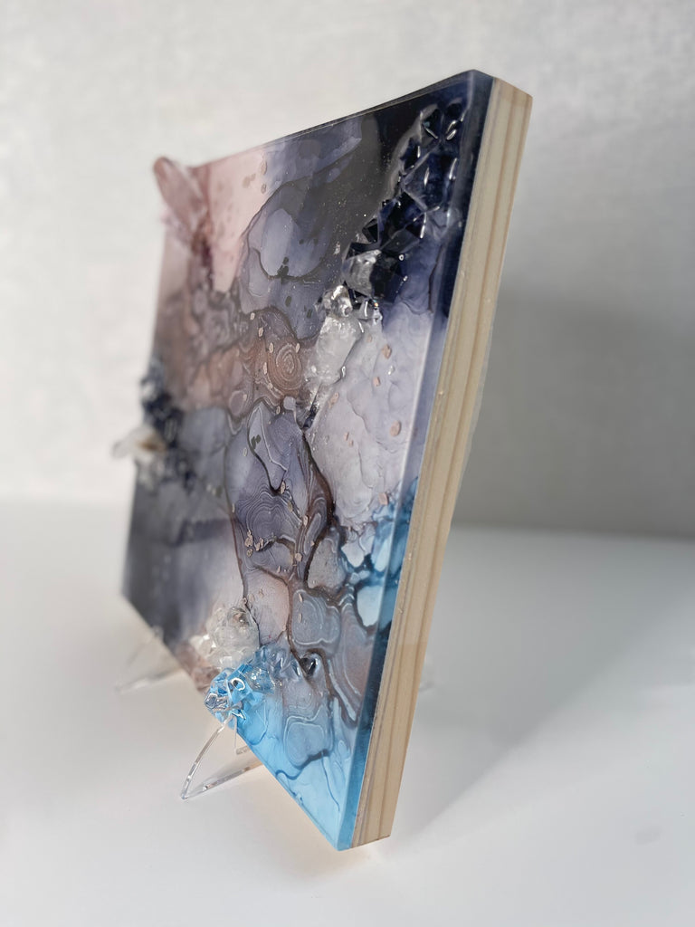 Material: Alcohol Inks, Mixed-Media & Resin on wooden board